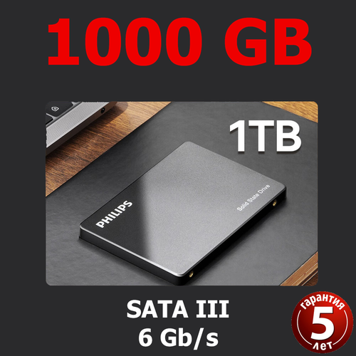 Philips SATA SSD 960GB, скорость чтения 500 МБ/с, скорость записи 480 МБ/с.