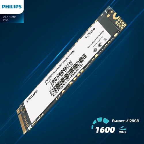 Жесткий диск Philips M.2 2280-128 ГБ, скорость чтения 1600 МБ/с, скорость записи 1200 МБ/с(6951613944653)