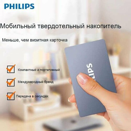 Type-C PSSD, Philips, 1 ТБ, скорость чтения 550 МБ/с, скорость записи 500 МБ/с.