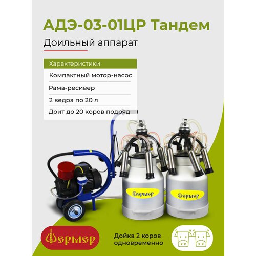 Доильный аппарат Фермер АДЭ-03-01ТЦР масляного типа (одновременное доение двух коров/ вкладыш - цельная резина)