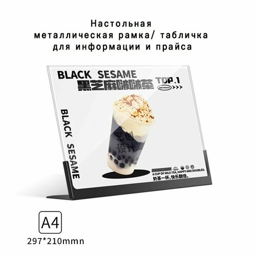 Тейблтент менюхолдер А4 прозрачный на металлическом черном основании горизонтальный/ рамка настольная