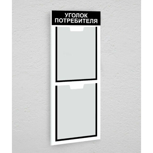 Уголок потребителя вертикальный, 750*270 мм, 2 плоских кармана А4, белый с черным