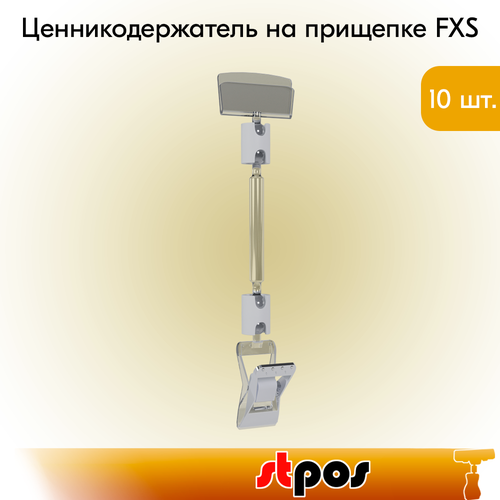 Комплект Универсальный ценникодержатель на прищепке малый FXS, 50 мм, Прозрачный -10 шт