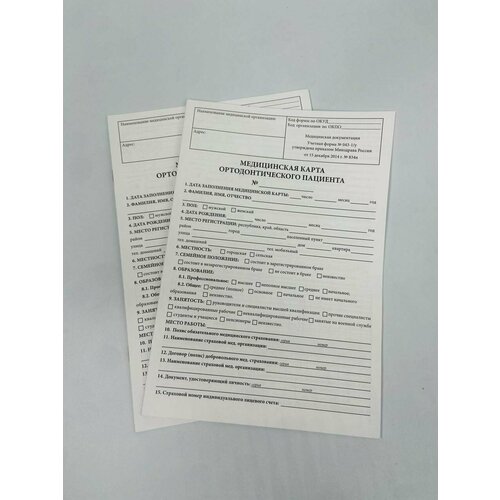 Медицинская карта ортодонтического пациента (Форма № 043-1/у), 12 л, А4 комплект 2 шт