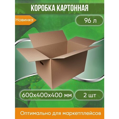 Коробка для хранения картонная, 60х40х40 см, С ручками, объем 96 л, 2 шт. (Гофрокороб, 600х400х400 мм )