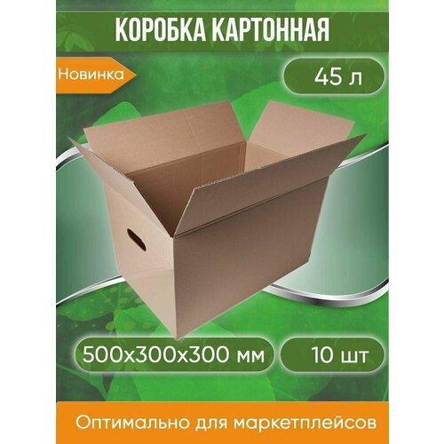 Коробка для хранения картонная, 50х30х30 см, С ручками, объем 45 л, 10 шт. (Гофрокороб, 500х300х300 мм )