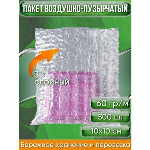 Пакет воздушно-пузырчатый (ВПП, пузырьковый, пупырчатый), 10х10 см, трехслойный, плотность пленки 60 гр/м, 500 шт.
