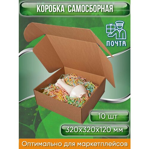 Коробка картонная самосборная, 32х32х12 см, объем 12,3 л, 10 шт, (Гофрокороб 320х320х120 мм, короб самосборный, почтовый).