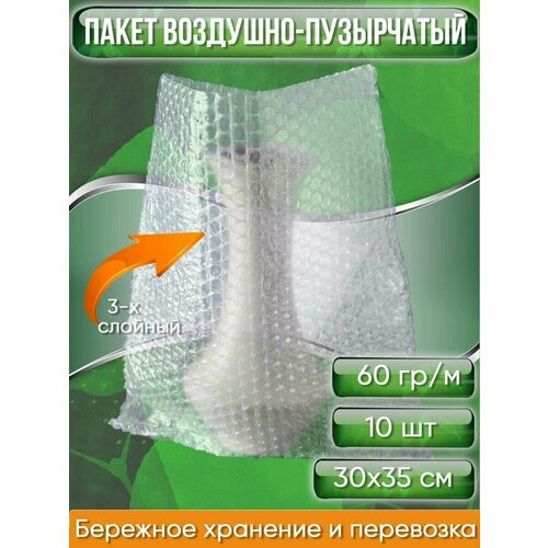 Пакет воздушно-пузырчатый (ВПП, пузырьковый, пупырчатый), 30х35 см, трехслойный, плотность пленки 60 гр/м, 10 шт.