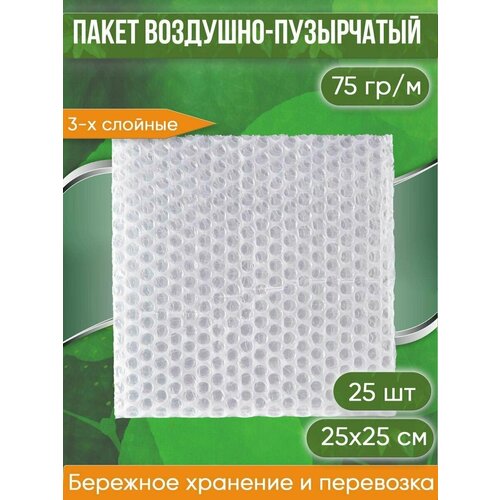 Пакет воздушно-пузырчатый (ВПП, пузырьковый, пупырчатый), 25х25 см, трехслойный, плотность пленки 60 гр/м, 25 шт.