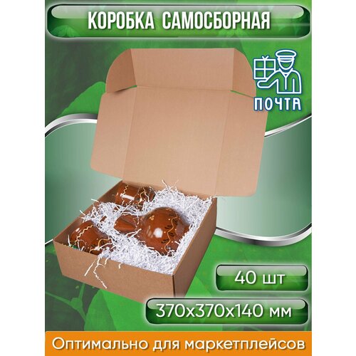 Коробка картонная самосборная, 37х37х14 см, объем 19,2 л, 40 шт, (Гофрокороб 370х370х140 мм, короб самосборный, почтовый)
