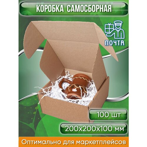 Коробка картонная самосборная, 20х20х10 см, объем 2 л, 100 шт, (Гофрокороб 200х200х100 мм, короб самосборный, почтовый).