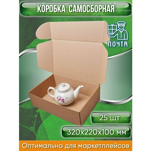 Коробка картонная самосборная, 32х22х10 см, объем 7 л (Гофрокороб 320х220х100 мм, короб самосборный, почтовый), 25 шт.