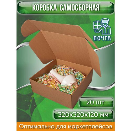 Коробка картонная самосборная, 32х32х12 см, объем 12,3 л, 20 шт, (Гофрокороб 320х320х120 мм, короб самосборный, почтовый).