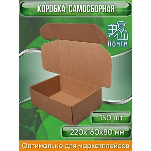 Коробка картонная самосборная, 22х16х8 см, объем 2,8 л (Гофрокороб 220х160х80 мм, короб самосборный, почтовый), 150 шт.