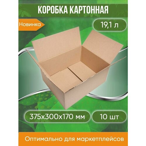 Коробка картонная, 37,5х30х17 см, объем 19,1 л, 10 шт. (Гофрокороб, 375х300х170 мм )