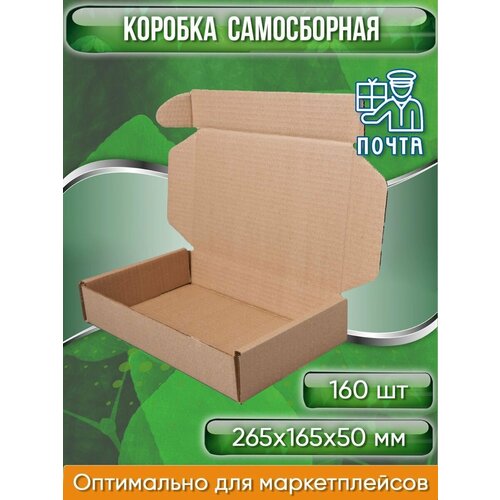 Коробка картонная самосборная, 26,5х16,5х5 см, объем 2,19 л, 160 шт. (Гофрокороб 265х165х50 мм, короб самосборный)