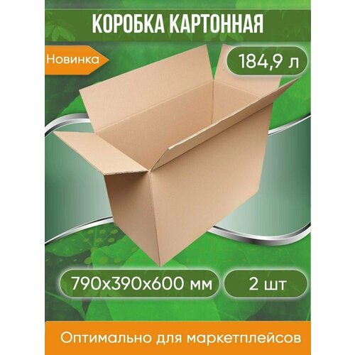 Коробка картонная, 79х39х60 см, без ручек, профессиональный, пятислойный, объем 184.9 л, 2 шт (Гофрокороб, 790х390х600 мм)