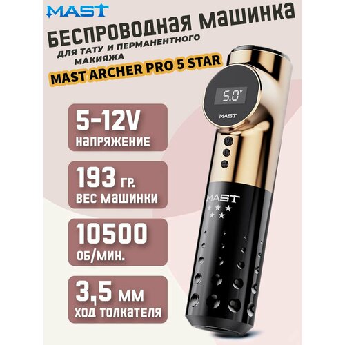 Беспроводная машинка для тату и перманентного макияжа MAST Archer PRO 5 Star Series Gold