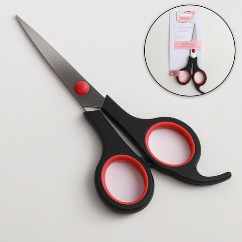 Ножницы парикмахерские с упором, лезвие — 6 см, цвет чёрный/красный