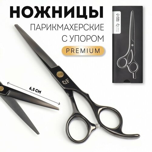 Ножницы парикмахерские с упором «Premium», загнутые кольца, лезвие — 6,5 см, цвет чёрный