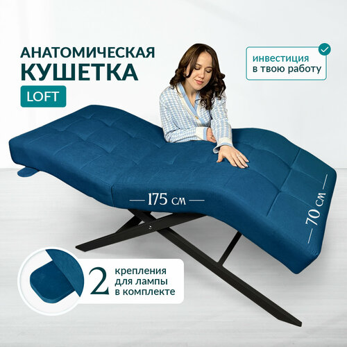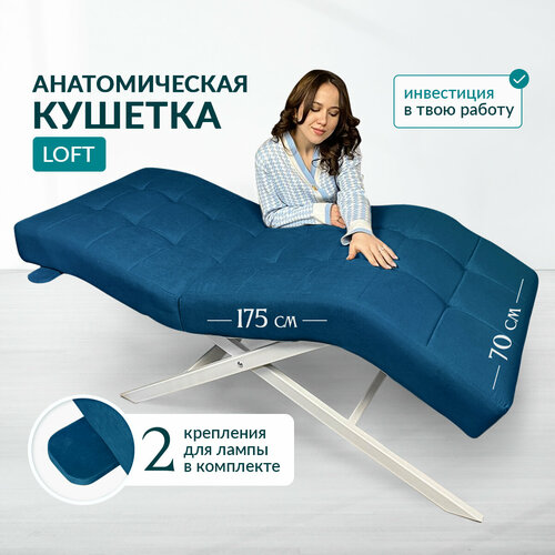 Анатомическая кушетка в стиле Лофт, в салон красоты, в студию, для наращивания ресниц, для преманентного макияжа, Велюр Цвет Синий