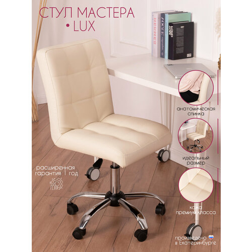 Стул мастера и клиента со спинкой и регулировкой высоты Cosmotec Ирис, на колесиках, пудра