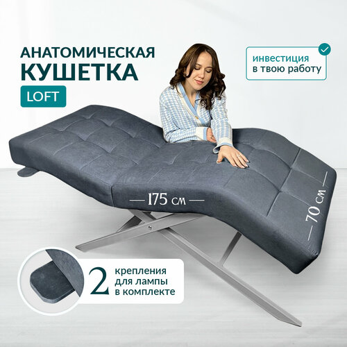 Анатомическая кушетка в стиле Лофт, в салон красоты, серебристая ножка, в студию, для наращивания ресниц, для преманентного макияжа, Велюр Цвет Серый