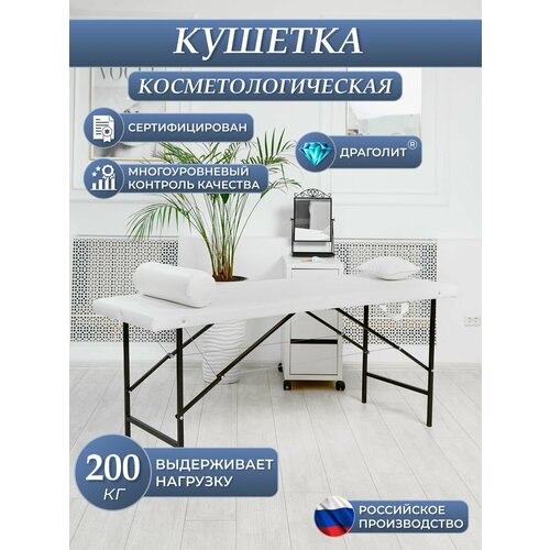Кушетка анатомическая Квадрат лофт, для наращивания ресниц, косметологическая, ноги белый металл