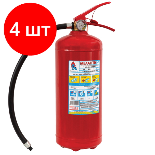 Комплект 4 шт, Огнетушитель порошковый ОП-4, АВСЕ(твердые в-ва, горючие жидкости и газы, электрооборудование до 1000В) закачной, в индивид. коробе, меланти, ОП-4 АВСЕ
