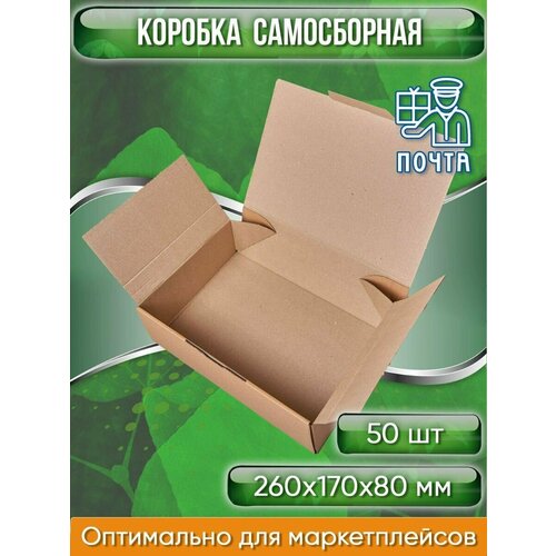 Коробка картонная самосборная, 26х17х8 см, объем 3,5 л (Гофрокороб 260х170х80 мм, короб самосборный, почтовый), 50 шт.