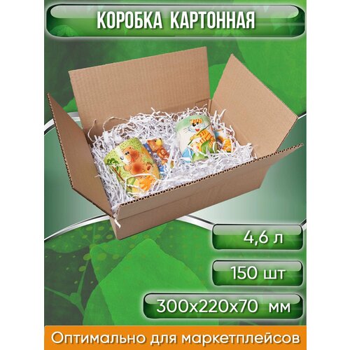 Коробка картонная, 30х22х7 см, объем 4,6 л, 150 шт. (Гофрокороб, 300х220х70 мм )
