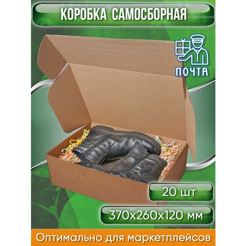 Коробка картонная самосборная, 37х26х12 см, объем 11,5 л, 20 шт, (Гофрокороб 370х260х120 мм, короб самосборный, почтовый)