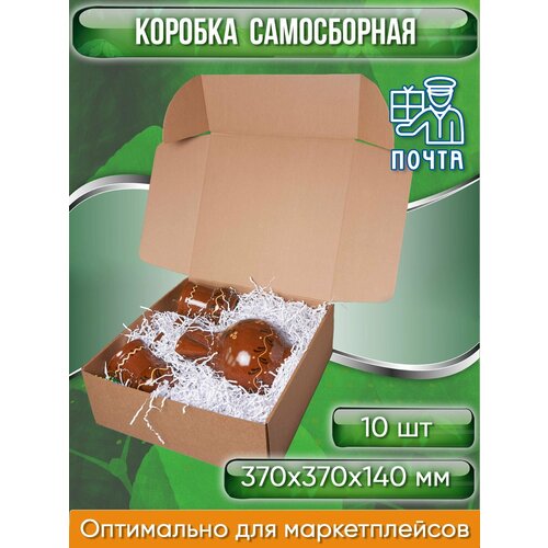 Коробка картонная самосборная, 37х37х14 см, объем 19,2 л, 10 шт, (Гофрокороб 370х370х140 мм, короб самосборный, почтовый)
