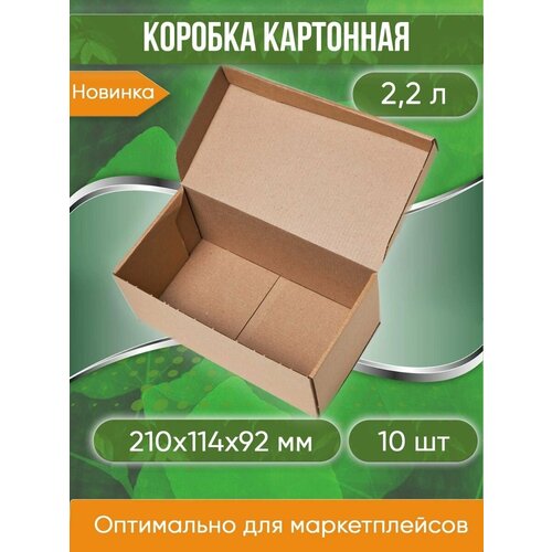 Коробка картонная самосборная, 21х11,4х9,2 см, объем 2,2 л, 10 шт. (Гофрокороб 210х114х92 мм, короб самосборный)