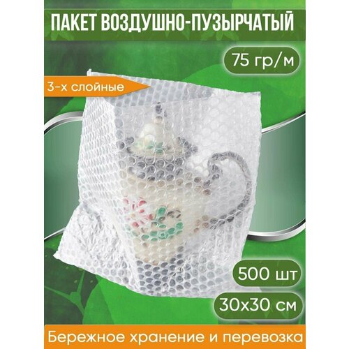 Пакет воздушно-пузырчатый (ВПП, пузырьковый, пупырчатый), 30х30 см, трехслойный, плотность пленки 60 гр/м, 500 шт.