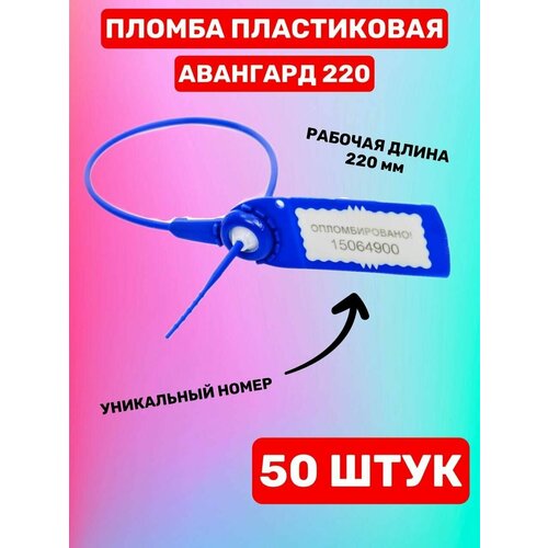 Пломбы пластиковые номерные авангард, самофиксирующиеся, длина 220 мм, синие, комплект 50 шт, в наборе 1 компл.