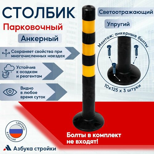 Столбик парковочный сигнальный анкерный упругий пластиковый светоотражающий 750 мм, черный