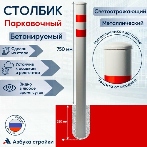 Столбик парковочный металлический бетонируемый светоотражающий сигнальный 750 мм
