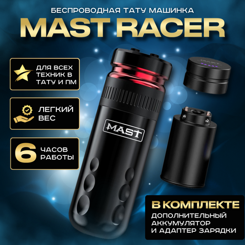 Беспроводная машинка для тату и татуажа Mast Racer Red с дополнительным аккумулятором