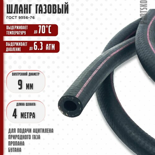 Шланг газовый 9 мм. / 4 метра. Резиновый для сварки газом, газорезки, горелки, подключения плиты к баллону ГОСТ 9356-75. С красной полосой.
