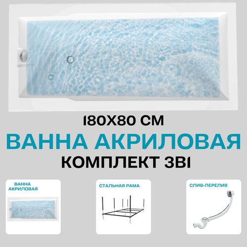 Ванна RAGUZA 180*80 Комплект: ванна, рама, слив-перелив