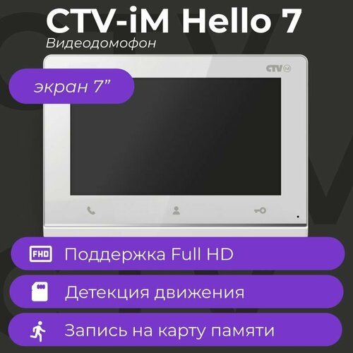 CTV-iM Hello 7 (Белый) Видеодомофон для квартиры, поддержка Full HD, дисплей 7" 1024x600, с записью видео по детекции движения, автоответчик, HOOK