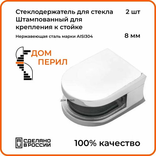 Стеклодержатель Дом перил для крепления стекла 8 мм к стойке. Комплект 2 шт.