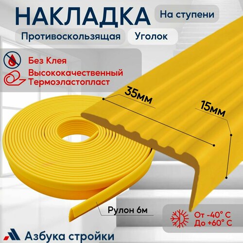 Противоскользящая лента Противоскользящая резиновая накладка угол на ступени без клея 35мм, длина 6м, желтый