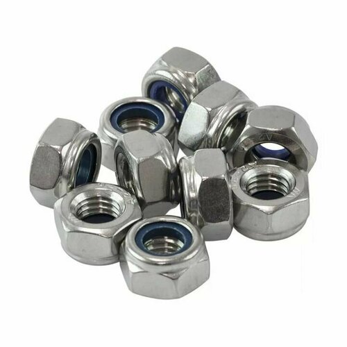 Гайка со стопорным кольцом М10 цинк класс прочности 5.8 DIN 985 (50 штук)