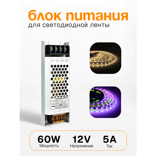 Блок питания / импульсный источник питания для светодиодной ленты (12V/60W/5А)