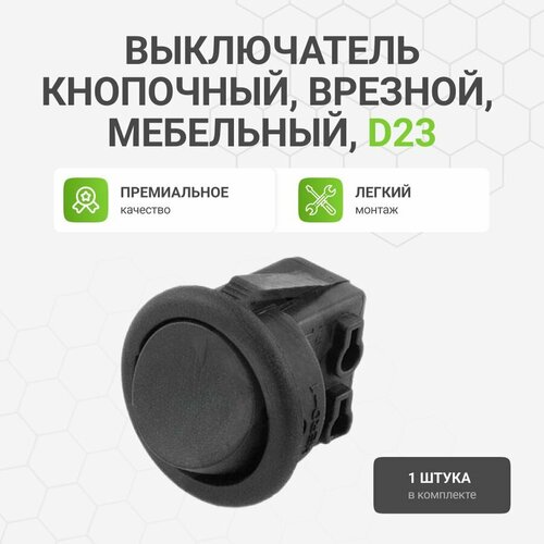 Выключатель кнопочный D23 врезной мебельный 1 шт.