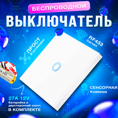 Беспроводной сенсорный выключатель одноклавишный, (без реле)
