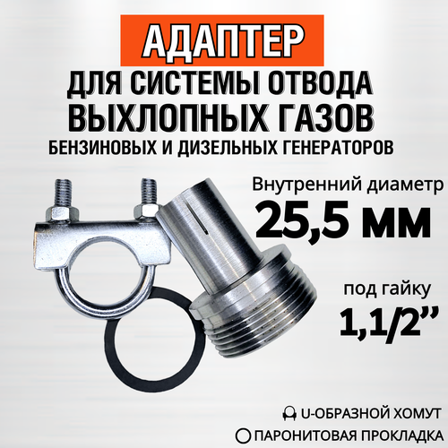 25мм - Адаптер с хомутом (под гайку 1,1/2") для системы отвода выхлопных газов генератора